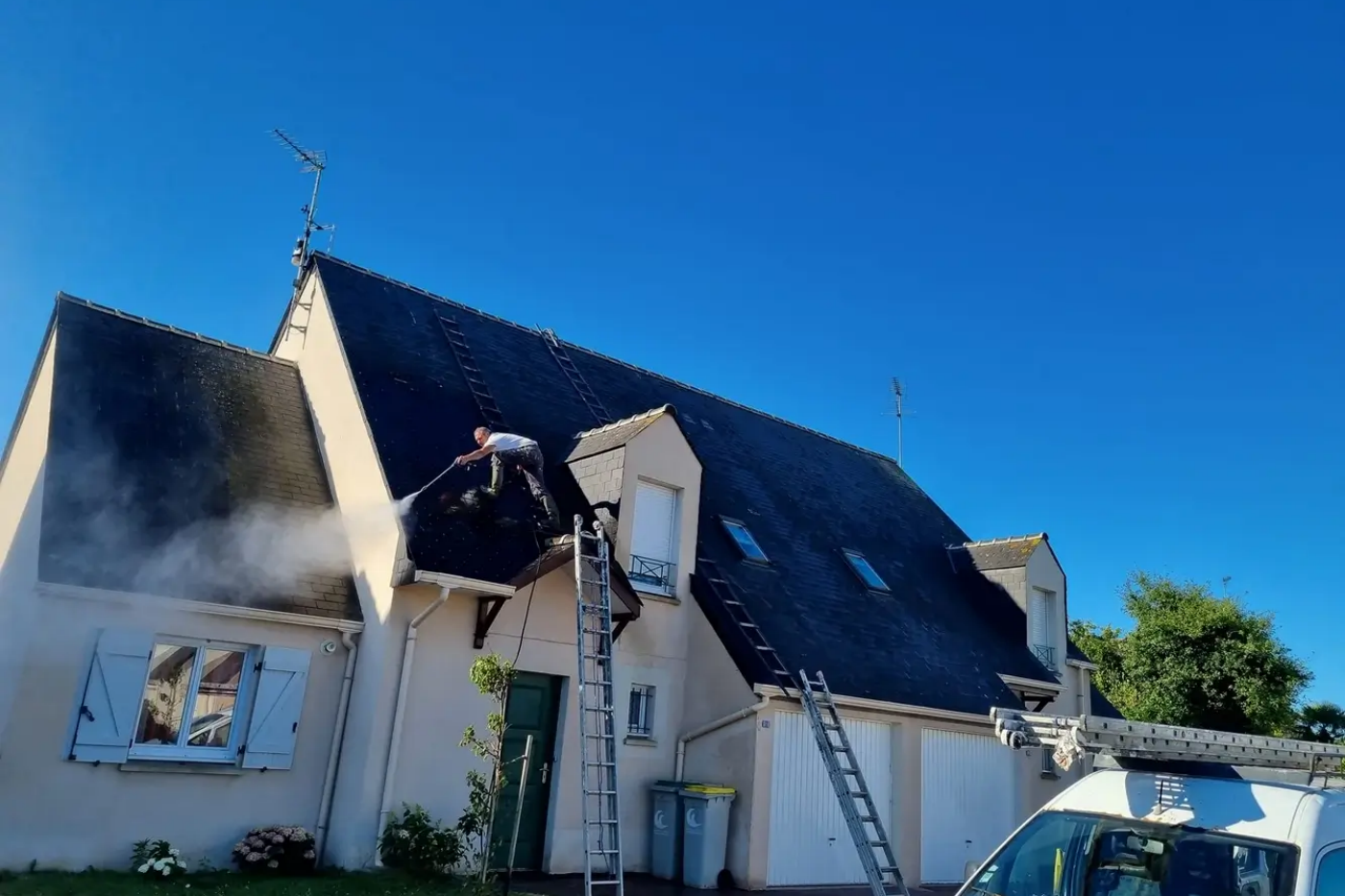 ClienteL'entreprise Ouest Eco Rénov est intervenue chez moi pour des travaux de nettoyage pour façades et ma toiture. Travail nikel.